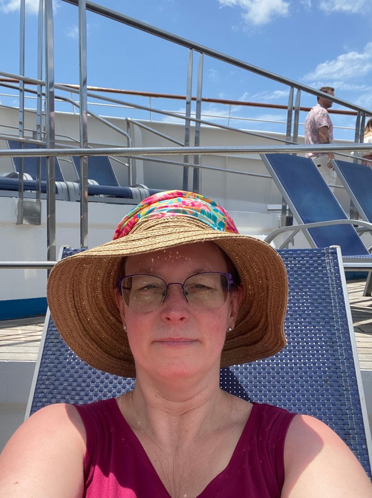 My one book that I brought with me was Mary Stewart’s “Rose Cottage.” A mystery about family, a missing past and ghosts. The story is set in Scotland, a bucket list vacation for me, after World War II. The main character Kathy Welland, is called home from London to help take care of her grandmother that raised her after her mother left when she was six years old. Grandma asks for some papers and trinkets from a hiding spot ion the house where she raised Kathy, Rose Cottage, aptly named due to her grandfather’s gardening skills as a Gardner for the main house. There’s a mystery to solve and nosey neighbors who see visions. It was a wonderful quick read. I actually left it behind on the cruise to pass on to someone else.